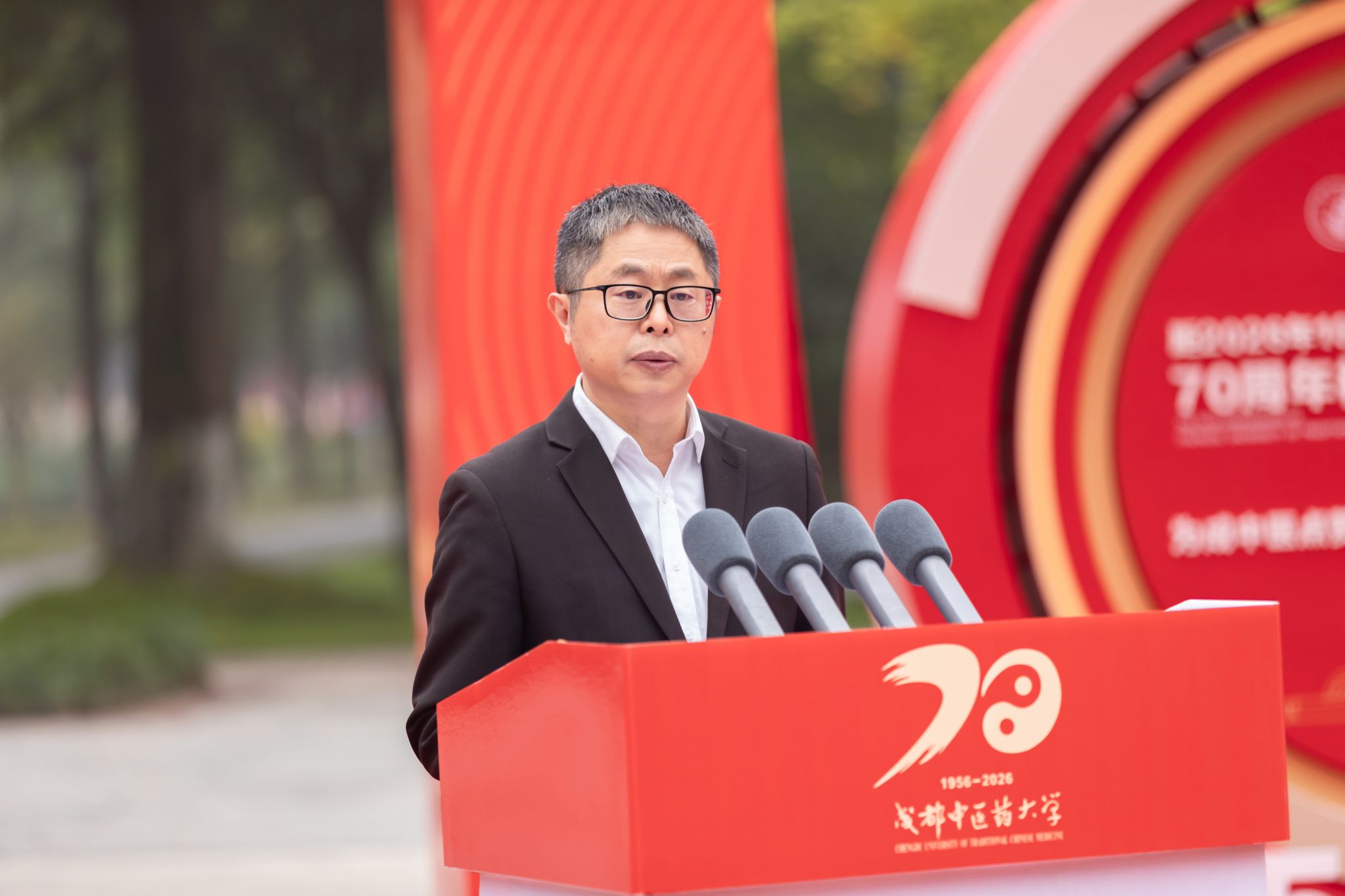 张泽钧在启动仪式上讲话,他指出,beat365平台唯一官网七十年耕耘路,绘就了一幅与国同运、厚朴远志的创业画卷;谱写了一曲守正出新、砥砺前行的开拓之歌;收获了一幅同心致远、桃李天下的丰收图景;beat365平台唯一官网的70年,是成中医与国家民族同呼吸、共命运,扎根中国西部的立业史;是成中医人用信念和热忱,将自身发展融入国家需要的奋进史;是中医药高等教育根植华夏文明沃土,生动彰显精神底蕴的发展史。