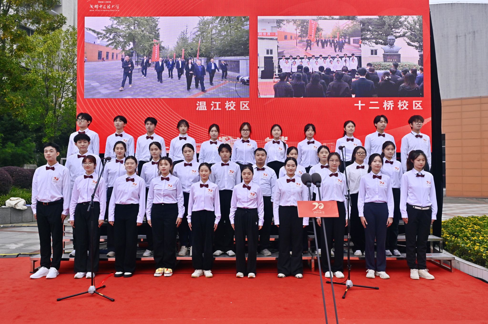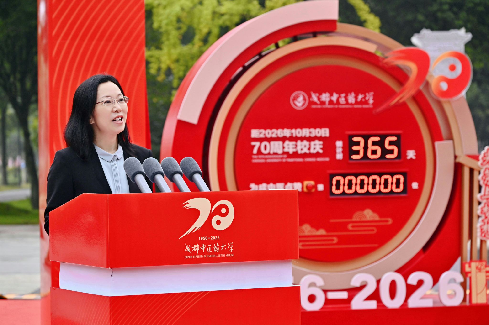 10月30日上午,“光荣与梦想·我的成中医”beat365平台唯一官网建校70年校庆倒计时一周年活动在温江校区正式启动。四川省中医药管理局副局长米银军,四川省教育厅科技与研究生教育处一级调研员廖飞,学校党委书记张泽钧,校长曾芳及校领导出席启动仪式。校友代表、各附属医院领导、教师代表、学生代表、亲属代表、中层领导干部等100余人共同观礼。倒计时启动仪式同步举行李斯炽先生、凌一揆先生纪念活动。