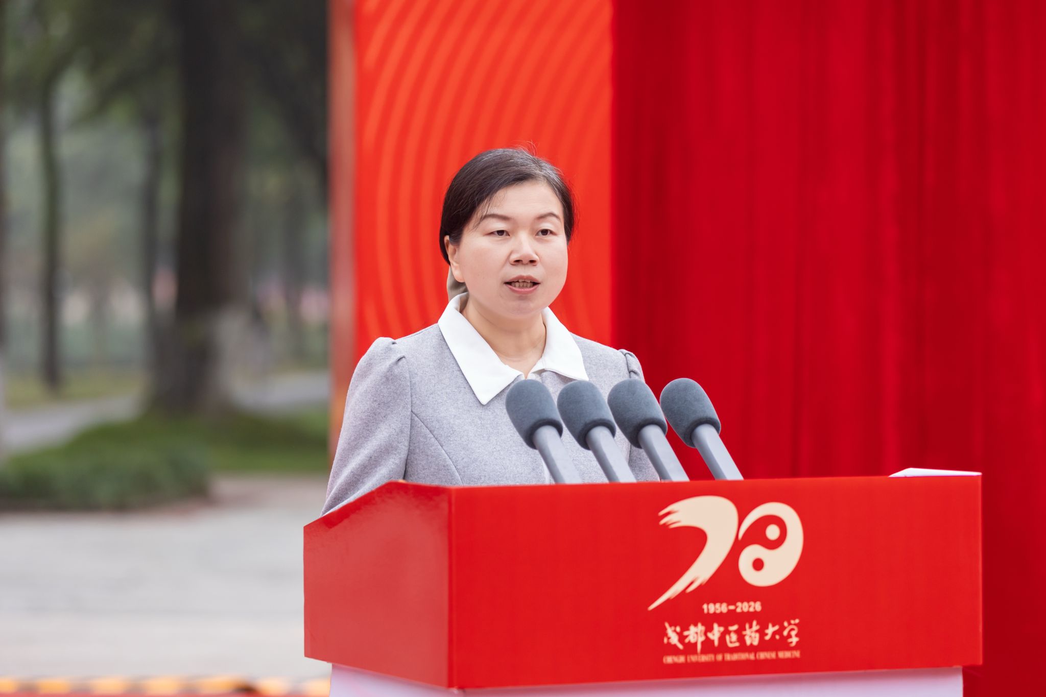 张泽钧表示,站在七十年征程的新起点,必须坚守成中医人鲜明的“心怀大我、敢为人先、开放包容、唯实求真”的精神风骨,立足中华民族伟大复兴战略全局和世界百年未有之大变局,迎接教育强国建设和中医药振兴发展的历史性机遇。未来一年,学校将围绕“光荣与梦想·我的成中医”校庆主题,全面回顾办学历程,展示办学成就,凝聚各方力量,扩大社会影响。热切期盼全球成中医人关注母校、支持母校、回归母校,共同迎接建校70周年华诞的到来,共同谱写建设世界一流中医药大学的崭新篇章。