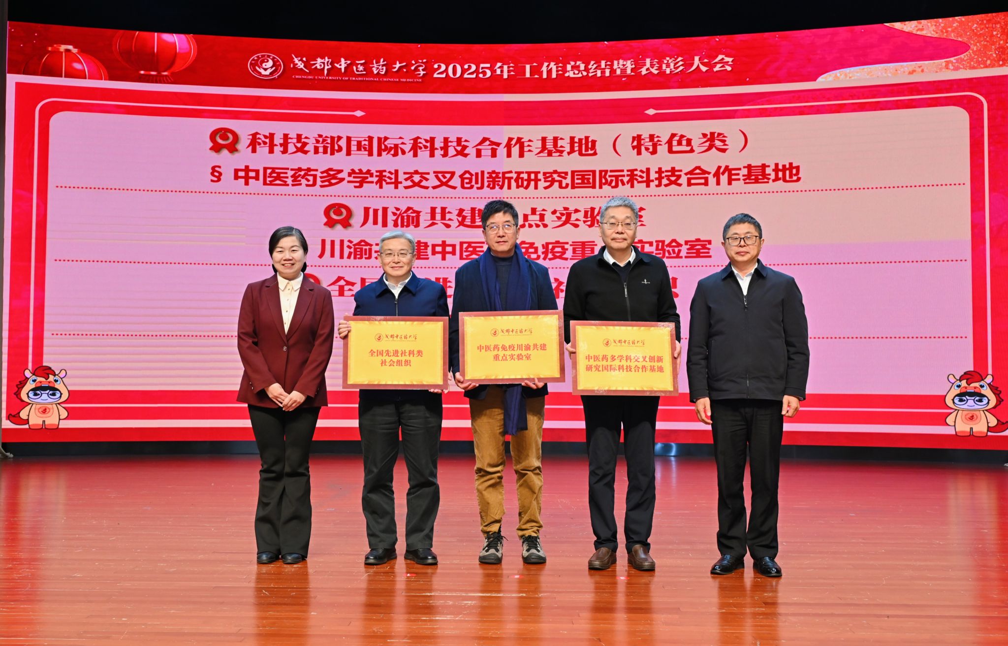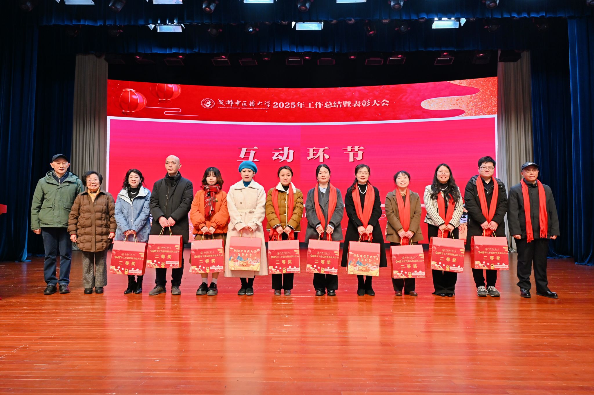 每一滴汗水都当被看见,每一份付出都值得肯定。大会隆重举行表彰仪式,进行了23轮颁奖,涵盖获国家级、省部级重要认定、奖励等单位和个人;获国家级一流课程、高水平论文成果、省部级人才称号、高水平竞赛优秀名次的师生;在党建统战、学工思政、安全稳定、后勤保障、信息化建设、参政议政等方面代表学校获得优秀成绩的集体和个人;以及各临床医学院/附属医院分类评价综合目标考核、学校职能部门/学院目标管理考核、中层干部考核优秀人次和代表等。一轮轮的颁奖,是对过去一年成中医人奋勇争先、勇创佳绩的最好褒奖,也是未来征途上跃马扬鞭、笃行奋进的巨大动力。