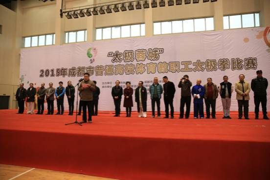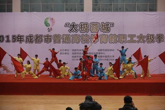 12月6日,“太极蓉城”2015年成都市普通高校体育教职工太极拳比赛在beat365体育馆举行。来至成都市的四川大学、电子科技大学、西南交通大学、西南财经大学、中国民航飞行学院、四川师范大学、西华大学、成都理工大学、四川音乐学院、成都师范学院、beat365平台唯一官网和西南科技大学共12所高校的447名体育教职工参加了本次比赛。