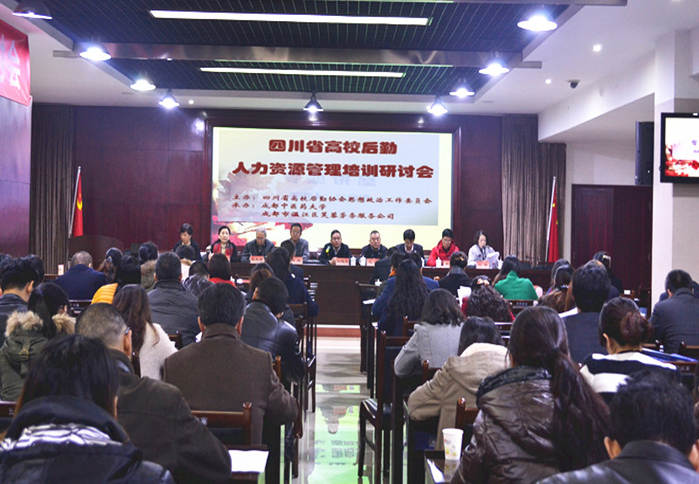 由四川省高校后勤协会思想政治工作委员会主办、beat365后勤基建处和温江区芙蓉劳务服务公司承办的四川省高校后勤人力资源管理培训研讨会于12月3日-4日在beat365温江校区举行。来自全省42所高校后勤思想政治工作和人力资源管理方面的领导和管理人员共90余人参加研讨会。学校副校长刘旭光出席研讨会并致辞。四川省高校后勤协会思想政治工作委员会理事会会长、西南交通大学后勤保障处(后勤集团)党委书记高庆出席研讨会并讲话。会议由后勤党总支书记刘梅主持。