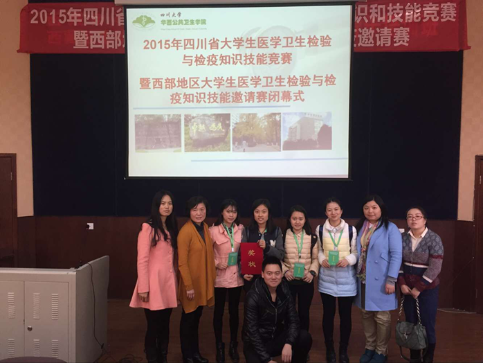 11月27日至29日,2015年四川省暨西部地区大学生卫生检验与检疫知识技能大赛在四川大学华西公共卫生学院举行,来自省内外10所高校的代表队共40名队员参赛。beat365由医学技术学院卫生检验2012级杨贵琴等4名同学组成的代表队喜获二等奖。