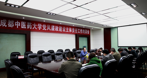 根据学校党委关于在全校范围开展落实党风廉政建设主体责任工作大约谈活动的要求,11月19日上午,校党委常委、纪委书记延建明同志召开分管、联系单位、部门负责人落实党风廉政建设主体责任工作约谈会,民族医药学院、纪检监察处、保卫处、审计处的副处级以上干部以及部分重要岗位的人员共计九人参加会议,会议还邀请了校纪委委员李智勇同志和党风廉政建设特邀监督员庞利红同志监督约谈会。