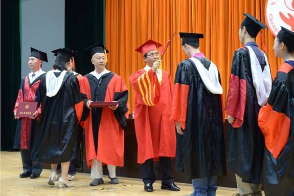 6月24日,2015届博士学位授位仪式在温江校区百会堂举行,校领导马跃荣、梁繁荣、沈涛、安劬、余曙光、彭成和相关学院负责人等出席,博士研究生导师与2015届博士毕业生参加授位典礼。