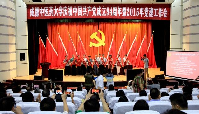 7月1日,学校在温江校区隆重举行庆祝中国共产党成立94周年暨2015年党建工作会。党委书记马跃荣作庆祝中国共产党成立94周年讲话暨党建工作报告,党委副书记、校长梁繁荣主持。会议主题为“践行‘三严三实’,以党建新常态引领学校再腾飞”。在家校领导、处级干部、受表彰的先进基层党组织、优秀党务工作者和优秀共产党员、离退休老党员代表、民主党派基层组织和侨台联负责人参加会议。温江区委常委、区委组织部长王庆、柳城街道、天府街道党工委书记、人大工委主任及天府学府社区党组织负责人出席会议。
