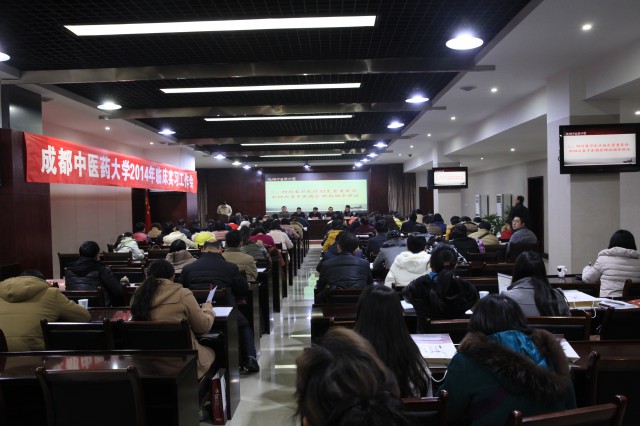 12月25日,学校2014年临床实习工作会在温江校区行政楼五会议室召开。学校党委书记马跃荣、校长梁繁荣、副校长刘旭光、四川省卫生和计划生育委员会科教处副处长方晓明、四川省中医药管理局人教处副处长贾建勋出席会议,来自学校37个临床实习基地的副院长、教学管理人员、临床带教教师代表等100余人参加会议。
