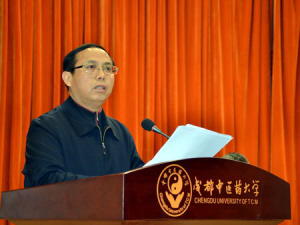 校长梁繁荣在会上作了主题报告。梁繁荣提出,未来学校学科建设的总体目标是以构建中医药学科高峰平台、培育优质人才、产出重大成果、繁荣学术文化、服务经济社会发展为主要任务,瞄准学科前沿,遴选一批高水平、引领学科建设的带头人,打造一批高水平的服务经济社会能力突出的科研平台、临床基地,产生一批具有显著创新性和影响力的科研成果,培养一批高层次的复合型创新人才,产出一批特色突出的优势学科。同时,要建立体系完整、流程规范、责权利明晰的学科建设管理体制。探索以院系为基础,以人才队伍为核心,有利于创新、交叉、开放和共享的学科组织形式和建设运行机制。力争通过三年建设,实现两到三个优势学科达到或接近世界先进水平,若干优势学科在全国名列前茅,力争在下一轮学科评估中,主干学科整体实力在全国排名上升一到二位。