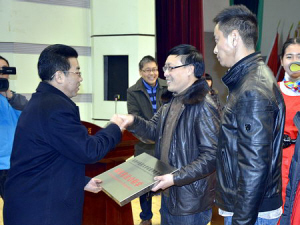 校党委书记马跃荣、校长梁繁荣为新遴选校级重点学科进行了授牌。