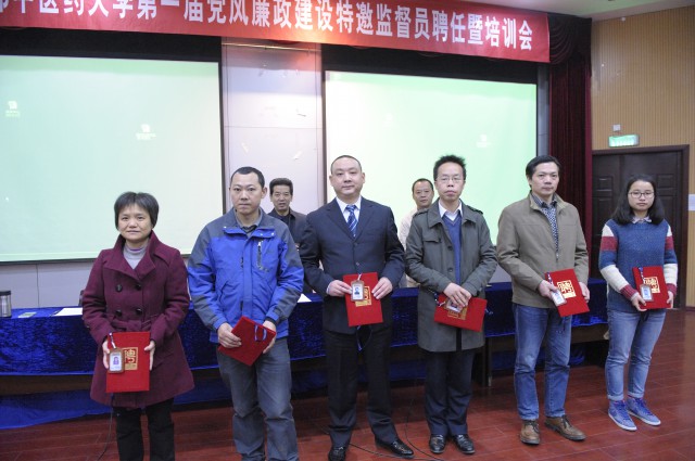 延建明宣读《关于聘请万丽等146名同志为beat365平台唯一官网第一届党风廉政建设特邀监督员的决定》,校领导向特邀监督员代表颁发了聘书和工作证。