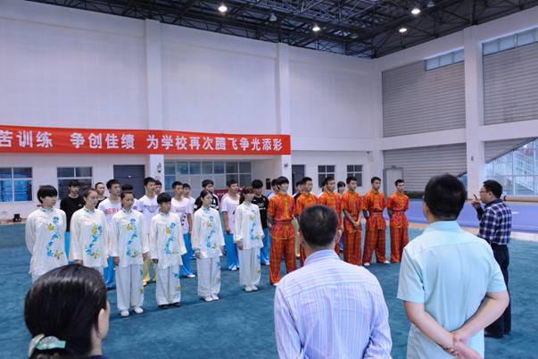 在观看了运动员的训练之后,马跃荣首先代表学校向积极备战的代表团全体师生表示感谢,希望大家刻苦训练、科学训练,以优异的成绩为学校的再次腾飞争光添彩。