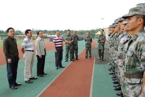 9月17日上午,校党委书记马跃荣,校长梁繁荣,党委副书记、副校长沈涛,纪委书记延建明深入军训训练场,看望慰问军训学生、教官及工作人员。