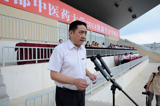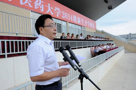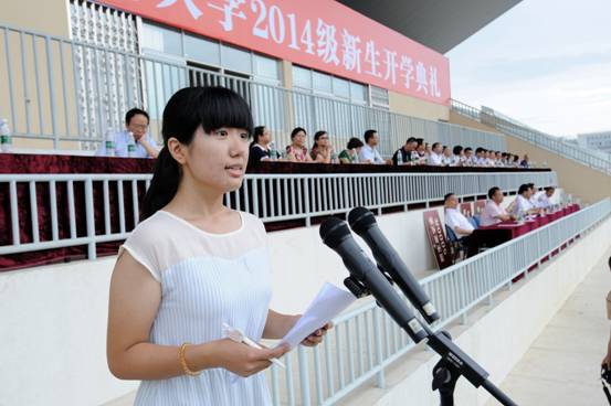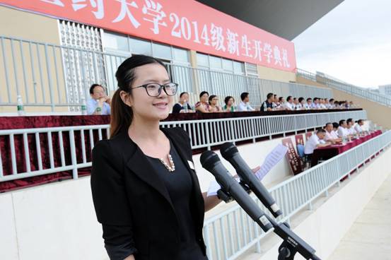 新生代表、临床医学院2014级七年制中西医专业的王楚宁同学发言表示会尽快适应新生活,树立新目标;会与同学团结友爱,相互包容;会严于律己,勤学苦练,做适应社会发展的复合型中医药人才。