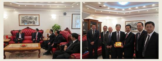 在中国驻马其顿大使馆,马跃荣向温振顺大使汇报了访问马其顿的背景和主要内容。温振顺介绍了马其顿共和国的国家概况,畅谈去年10月伊万诺夫总统访华时提到的中医药合作与推广细节。他建议学校与国家留学基金委联系,争取将中国政府奖学金学生培养任务放在beat365。