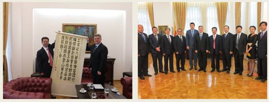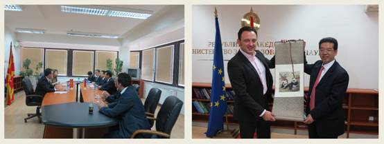 应马其顿共和国戈瑟德尔瑟夫(什提普)大学校长萨萨•米特雷夫教授的邀请,学校党委书记马跃荣、附属医院院长钟森、教务处处长王飞、国际合作与交流处处长姚洪武、外事项目科科长舒薇一行5人,于6月24日至27日访问了戈瑟德尔瑟夫(什提普)大学并签署了合作备忘录。马其顿共和国总统格奥尔盖•伊万诺夫、卫生部部长托多罗夫和教育科技部副部长里斯托夫斯基、中国驻马其顿大使馆大使温振顺分别会见了代表团。