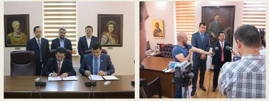 马跃荣一行参观了戈瑟德尔瑟夫(什提普)大学的三个校区,并与大学校长萨萨•米特雷夫教授、医学科学院院长鲁宾•古拉波斯基教授等就合作内容进行了会谈,签署了合作备忘录,拟在人才培训、课程设置、师生交流、文化交流、国际学术会议等方面开展具体合作。
