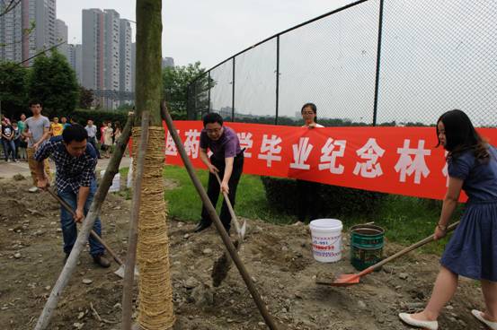 最后,参加植树活动的领导和毕业生代表一起为新树培土、浇水、挂牌。“毕业纪念林”作为今年首次开展的毕业生活动,在学校一环路旁,各学院毕业生共为学校捐赠了16棵朴树。