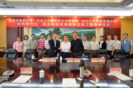 beat365与华润三九医药股份有限公司、雅安三九药业有限公司有良好的合作基础,联合完成的项目《参附注射液品质控制与产业化关键技术应用》在2013年获得国家科技进步二等奖,解决了企业难题,提升了参附注射液的销售业绩。在此基础上,三方本着优势互补、平等互利、长期合作的原则,成立“中药现代化”联合实验室,旨在依托beat365强大的科研资源,结合企业需求,有序开展现代中药创制、现代中药物质基础研究、中药质量控制前沿技术研究,建立强有力的产学研战略合作机制,开发更有效、更安全的中药创新药物,既符合国家战略要求,也满足了校、企发展需求。