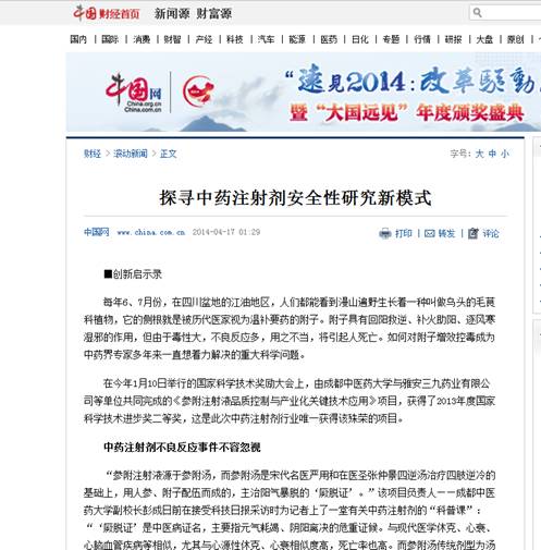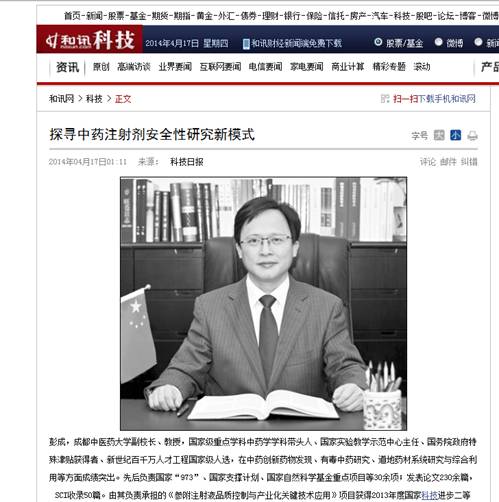 获奖公布后,国家、省市各级媒体频频聚焦beat365科研工作。今日,科技日报第9版专访学校副校长彭成教授,对该项目探寻中药注射剂安全性研究新模式和取得的重大成就做了全面报道。凤凰网、中国网、和讯网等网络媒体第一时间转载。