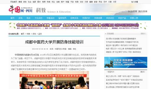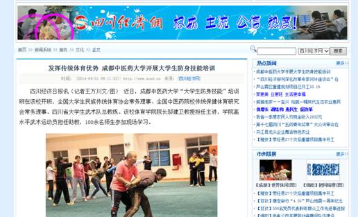 学校率先开展大学生防身技能培训受到媒体关注关注,人民网(视频)、中国网、四川新闻网、四川在线、四川经济日报网等分别来校采访报道。