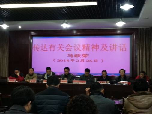 2月26日下午,学校在五会议室召开了2014年春季学期中层干部大会,党委书记马跃荣主持会议并讲话。会上,马跃荣对中层干部提出要求,要直面困难,攻坚克难,百折不挠,把主要精力集中到学校的发展上来,要坚定发展的信心,把发展作为第一要务。他希望干部同志们一定要尽心尽职,务求实效,以身作则,率先垂范,有强烈的事业心,扑下身子把工作抓实,坚持党的群众路线,结合部门实际,创新开展工作,在新的一年有新的气象、新的风貌,在新的工作岗位上有新的作为,做出新的业绩。