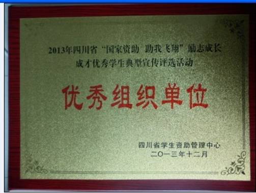 此次评选活动beat365学生资助管理中心因前期宣传充分、组织参评材料扎实,荣获四川省学生资助管理中心颁发的“优秀组织单位奖”。充分体现beat365学生资助管理中心不断深化学生资助工作的育人功能,加强对家庭经济困难学生的精神资助和能力培养的育人理念。一直以来,学生处学生资助管理中心在学校家庭经济困难学生领导小组和学生处的领导下,围绕“助困”、“扶志”、“强能”的多维发展目标,通过各类奖补助政策的深入落实,新生入学教育、励志教育、助学助研、各类培训工作的开展,切实为学生成长成才构建阳光育人环境,使学生在良好的校园人文、自然环境中陶冶情操,明智树德,全面健康发展。