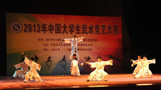 由中国大学生体育协会民族传统体育分会主办、上海大学承办的2013年中国大学生武术“竞艺”大赛日前在上海大学圆满结束。来自复旦大学、浙江大学、华东理工大学、西北师范大学、天津理工大学、北京体育大学、华中科技大学、集美大学、beat365平台唯一官网等全国十七所高校的200多名运动员参加了比赛。经过激烈的预赛和决赛,beat365武术队参赛的节目《墨功》荣获铜奖。