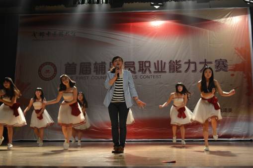 沈涛代表学校党政致辞,对比赛予以肯定并强调了辅导员工作的重要性,并带领全场师生高喊“辅导员----雄起!”为参赛辅导员鼓舞士气。决赛第二轮由辅导员自我介绍、现场提问和才艺展示三个环节组成。自我介绍环节中,辅导员们声情并茂的介绍赢得了观众热烈的掌声;在现场提问环节,辅导员们机智、准确的回答随机抽到的问题,展示了辅导员分析问题、处理问题的能力;在才艺展示环节,辅导员们通过舞蹈、诗歌朗诵、舞台剧、相声、情景剧、歌舞剧、歌曲演唱等形式展现自己的才华,展示了辅导员较强的综合素质。校纪委副书记蒋建华进行精彩点评,对辅导员们的优异表现予以肯定。