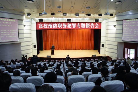 11月8日上午,结合党的群众路线教育实践活动和全省开展的正风肃纪活动,由省检察院、省委教育工委举办的高校预防职务犯罪专题报告会在beat365温江校区百会堂举行,对党员干部进行法纪宣传、警示教育。来自beat365平台唯一官网、电子科技大学、西南财经大学、四川农业大学、成都体育学院等在蓉的11所高校分管基建的校领导,学校职能处室、二级院系干部共380余人参加报告会。 beat365全体在家校领导、处科级以上领导干部及规建、人事、设备、财务、后勤等重点岗位责任人180余人参加了会议。
