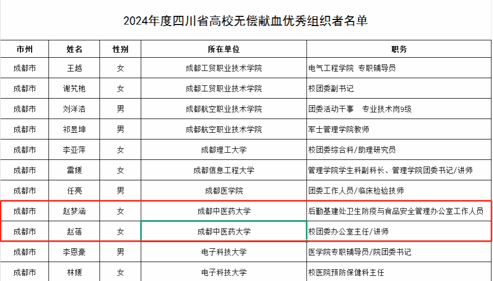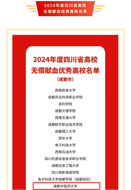 近日,四川省卫生健康委员会、四川省教育厅、共青团四川省委、四川省红十字会联合印发《关于表扬2024年度四川省高校无偿献血优秀单位和个人的通报》,beat365凭借在组织动员无偿献血工作中的突出贡献和师生积极参与的表现,获评“2024年度四川省高校无偿献血优秀高校”,2名老师荣获“四川省无偿献血优秀组织者”,67名志愿者获评“四川省高校无偿献血优秀个人”。