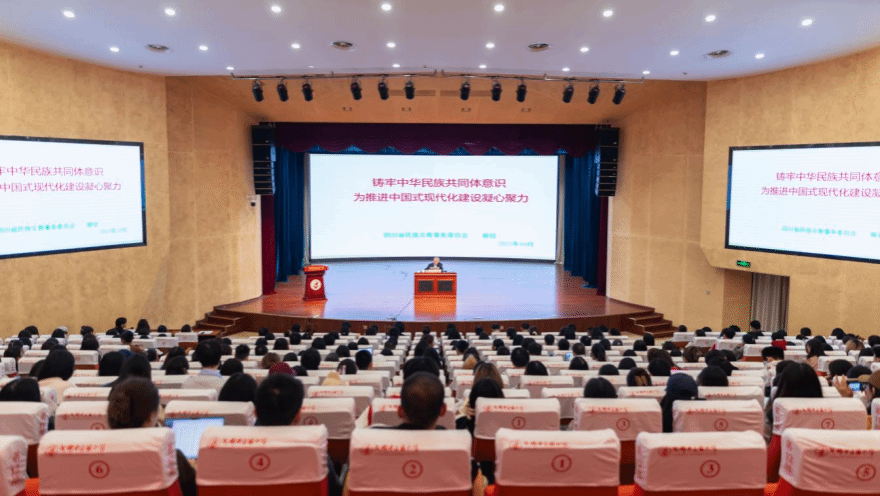 10月23日,由四川省民族宗教事务委员会、四川省教育厅、共青团四川省委主办的四川省铸牢中华民族共同体意识高校巡回宣讲在beat365举行。四川省铸牢中华民族共同体意识高校巡回讲堂三年行动宣讲团成员、四川省民族宗教事务委员会二级巡视员蔡钦作宣讲,校党委副书记杨静主持并讲话。