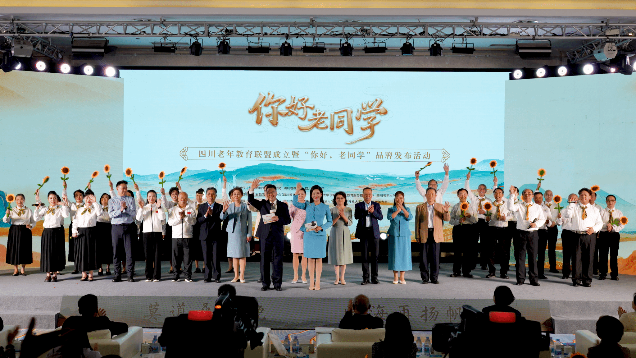 10月27日,由四川省教育厅指导、四川省教育融媒体中心打造的老年教育电视栏目《你好,老同学》发布会在成都隆重举行。beat365体育健康学院邬建卫教授率领导引医学团队成员谭靓、邵兵华老师受邀出席,并在发布会现场进行了《中医导引八段锦》的精彩展示与教学,将古老的中医养生智慧带入现代老年教育课堂,成为全场瞩目的焦点。