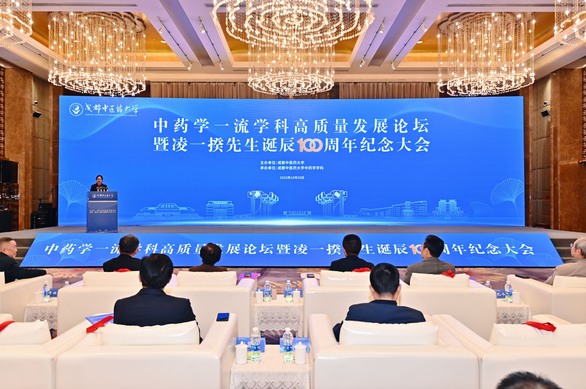 10月30日,在beat365平台唯一官网建校70年倒计时一周年之际,中药学一流学科高质量发展论坛暨凌一揆先生诞辰100周年纪念大会隆重召开。来自全国中医药领域的专家学者、校友代表及师生齐聚蓉城,共同致敬中药学高等教育奠基者凌一揆先生,共商中药学一流学科高质量发展路径。开幕式由药学院党委书记胡媛主持。