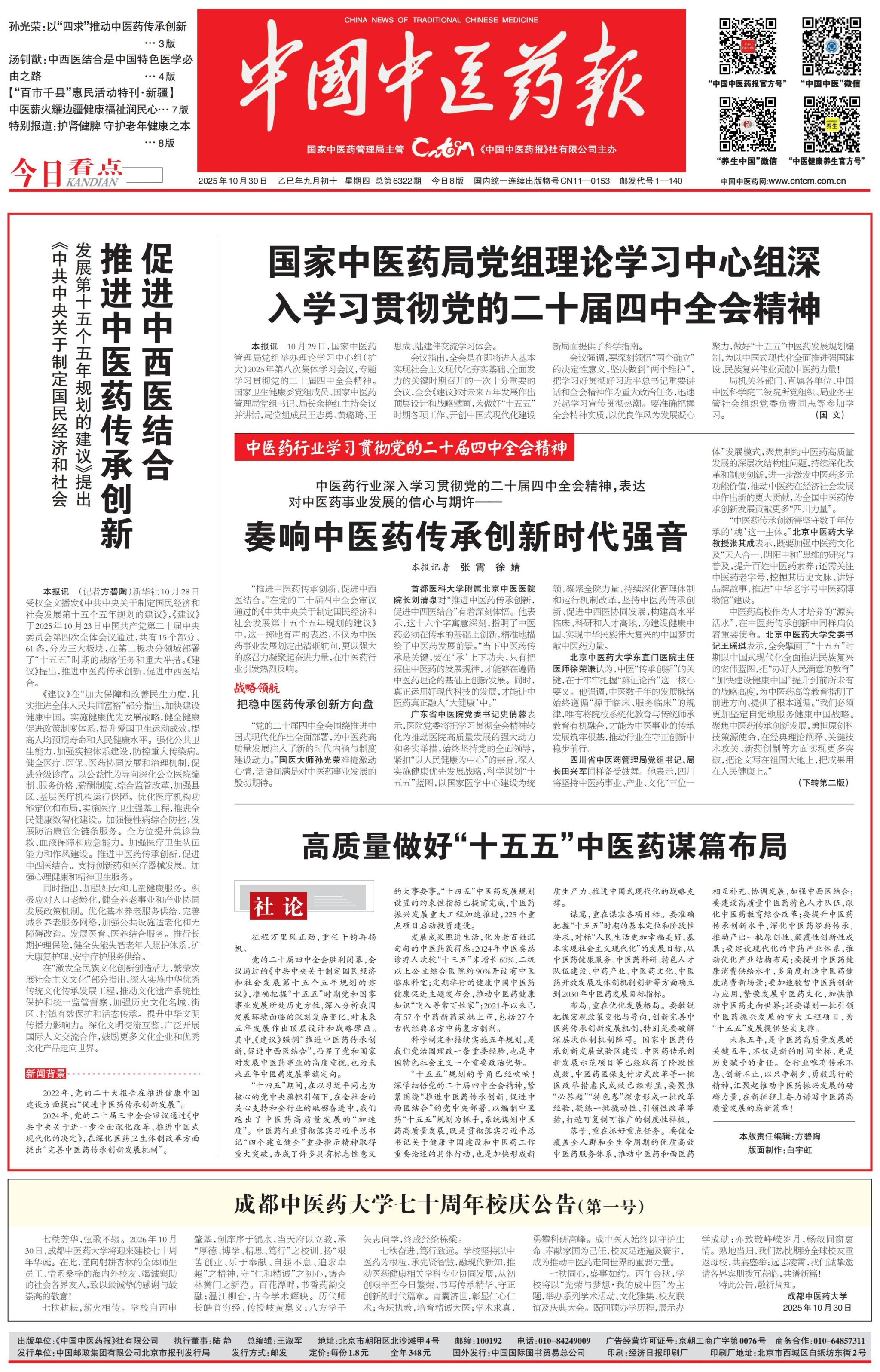 【校庆专题】《中国中医药报》:beat365平台唯一官网70周年校庆公告(第一号) 发布时间:2025-11-01 20:48:56 浏览次数: 次 【字体:小 大】 【打印正文】 上一条:四川省第六届“贡嘎杯”青少年校园体育超级联赛在beat365顺利开赛 下一条:【校庆专题】《四川日报》:beat365平台唯一官网70周年校庆公告(第一号)