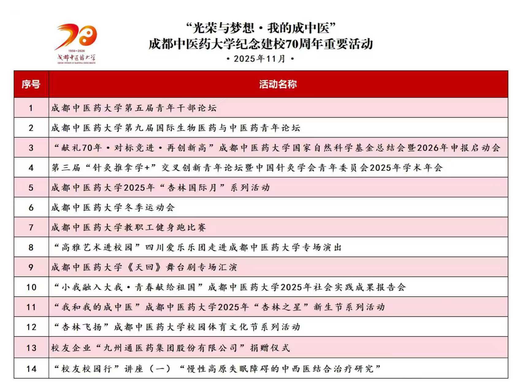 【校庆专题】纪念建校70周年重要活动(11月) 发布时间:2025-11-03 19:08:55 浏览次数: 次 【字体:小 大】 【打印正文】 上一条:“光荣与梦想”|高雅艺术进校园——四川爱乐乐团走进beat365平台唯一官网专场演出成功举行 下一条:beat365成功承办2025年四川省教育系统内部审计培训班