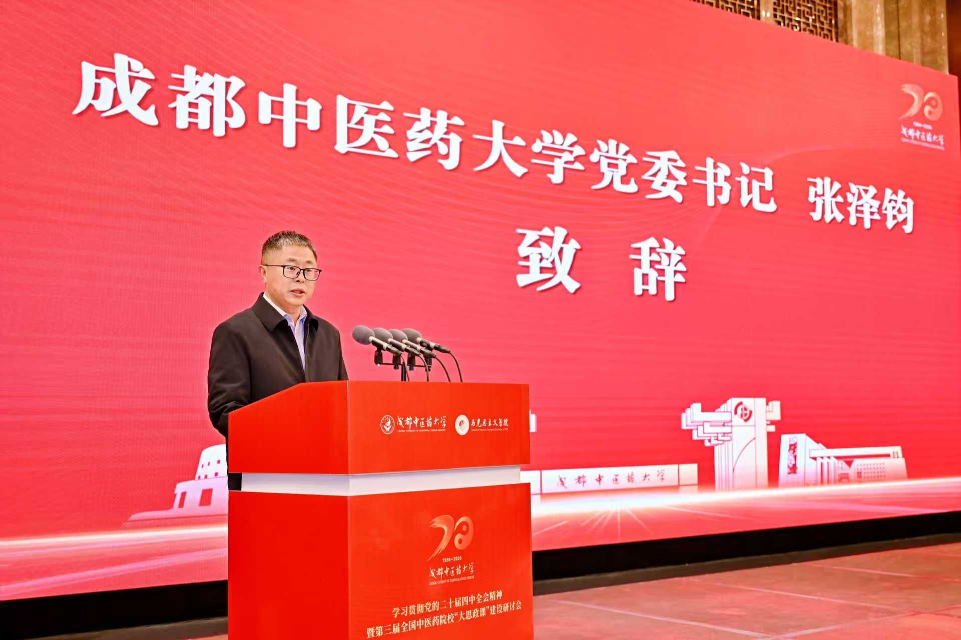 张泽钧致辞向莅会的各位领导、专家学者表示热烈欢迎,向长期关心支持学校事业发展的各界人士致以诚挚感谢。他强调,中医药院校要办好“大思政课”,一是文化为根,彰显特色,将中医药文化精髓创造性转化为“大思政课”的鲜活素材;二是技术赋能,创新方法,充分利用虚拟仿真、人工智能等现代信息技术,推动话语转换;三是实践淬炼,融入大局,开门办思政,持续构建“行走的思政课堂”,让学生在中国式现代化建设中砥砺品格、增长才干。希望以此次会议为新起点,共同推动“大思政课”建设内涵式发展。