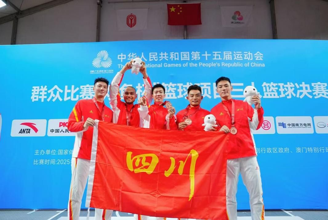 11月17日,第十五届全国运动会群众比赛三人篮球决赛阶段比赛在广州收官。beat365体育健康学院教师黄高意身兼“教练员”与“运动员”双重身份代表四川省出战。他临场指挥沉稳若定,赛场之上奋勇拼搏,率领球队一路过关斩将,最终获得全国第三名,为四川体育书写佳绩贡献了力量。