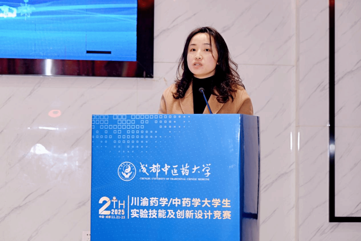 胡一梅代表学校致欢迎辞。她指出,川渝两地山水相连、医药同源,在成渝地区双城经济圈建设国家战略背景下,加强药学/中药学教育协同创新与人才培养互联互通至关重要。她表示,竞赛不仅为川渝医药人才培养搭建了“实战练兵场”,更打通了川渝两地高校教学改革、人才培养、科教融汇等的协作通道。她希望以此为契机进一步推动川渝药学/中药学教育教学改革,共同提高实验教学的水平和质量,不断推进药学/中药学学科高质量发展。