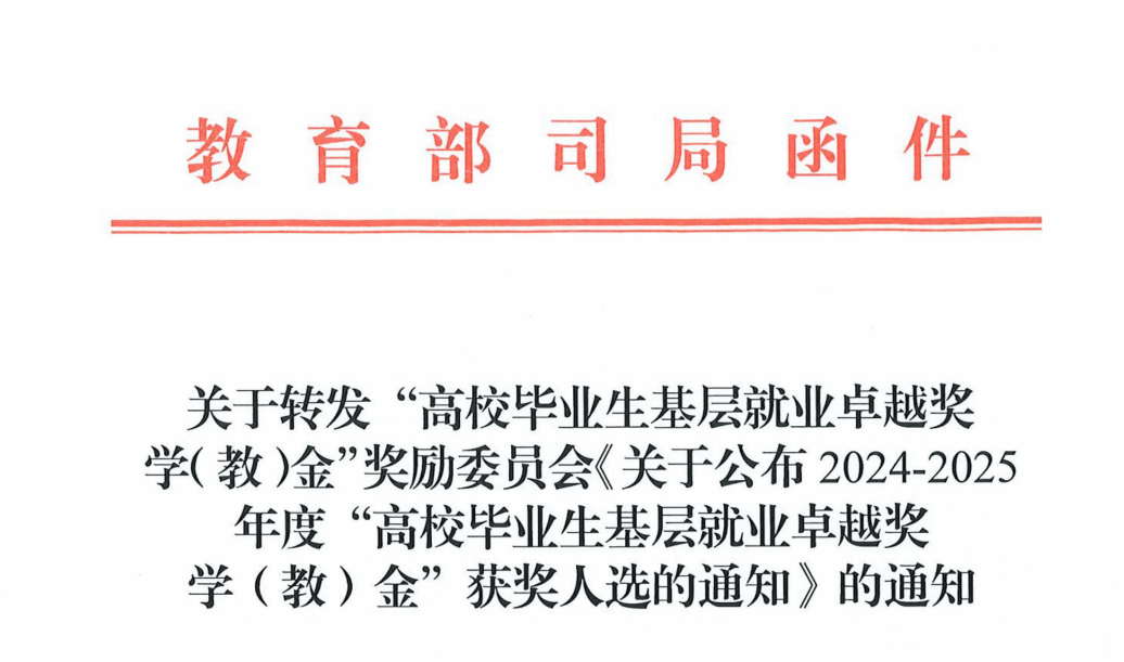 近日,教育部高校学生司(高校毕业生就业服务司)发布了2024-2025年度“高校毕业生基层就业卓越奖学(教)金”获奖名单,beat365外语学院英语专业2016届本科毕业生黄姣姣获“高校毕业生基层就业卓越奖学金”。该奖项自2022年设立以来,beat365连续三年获此殊荣,也是全国唯一一所连续三年获得该奖项的双一流中医药高校。