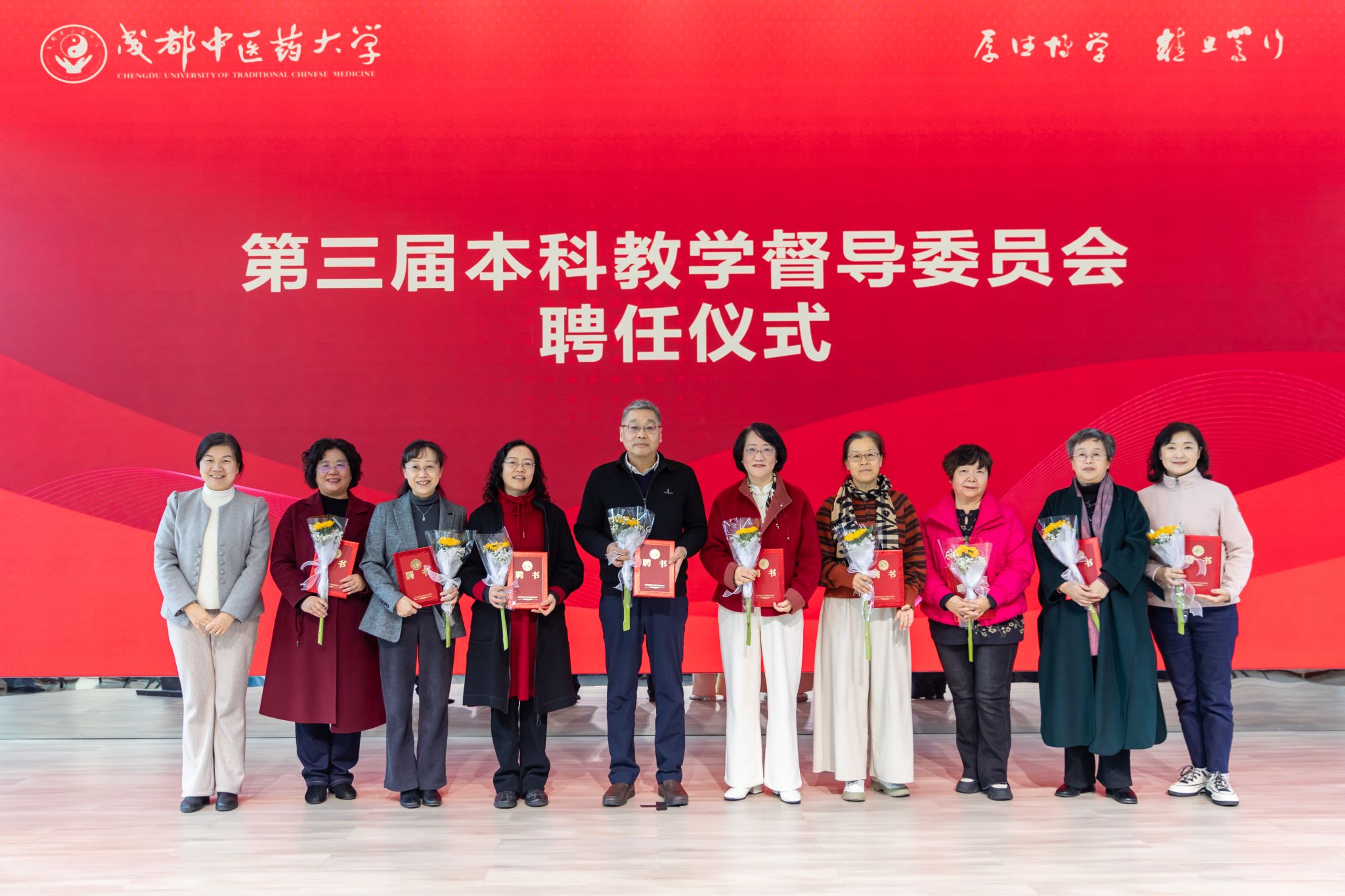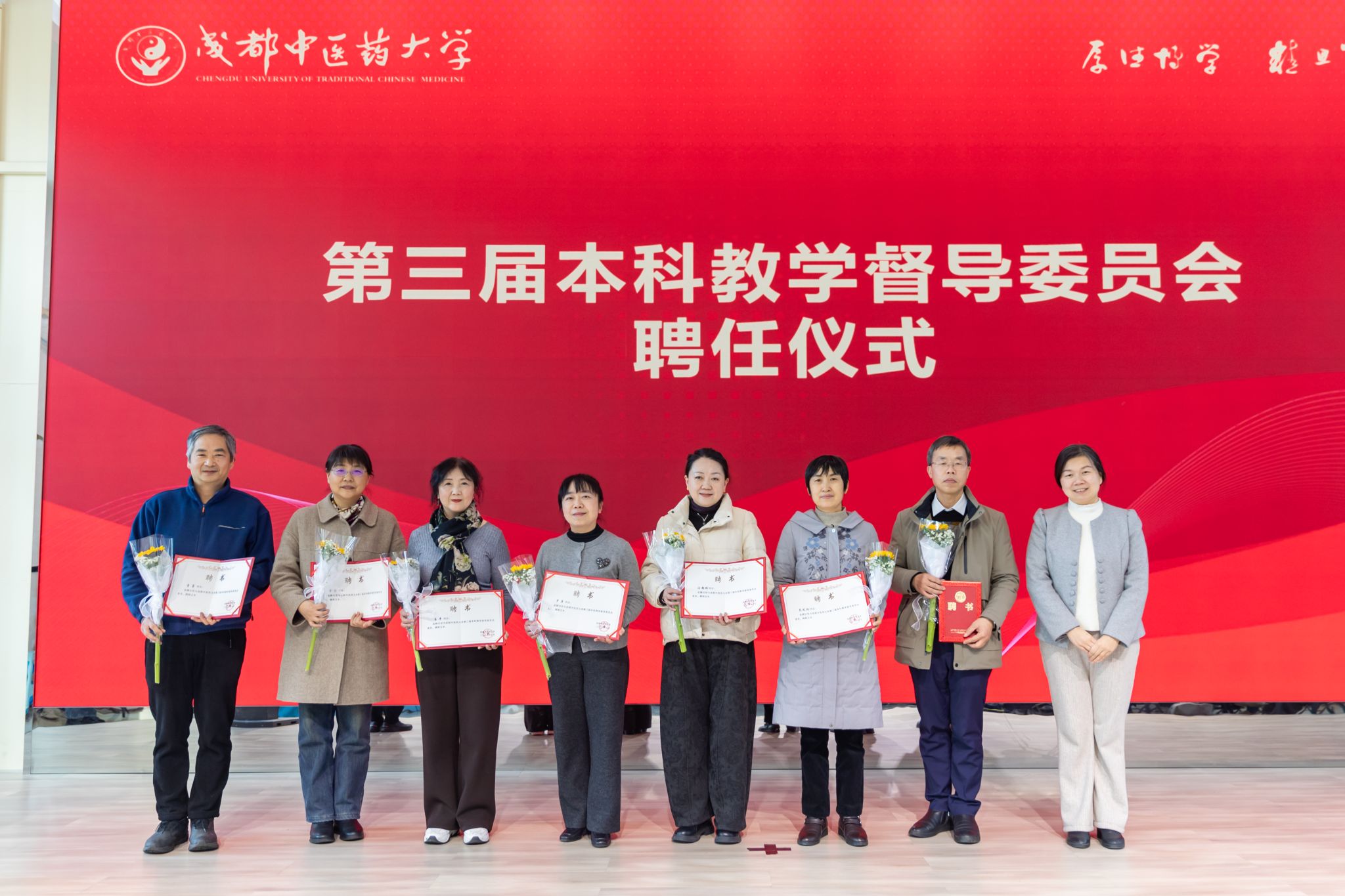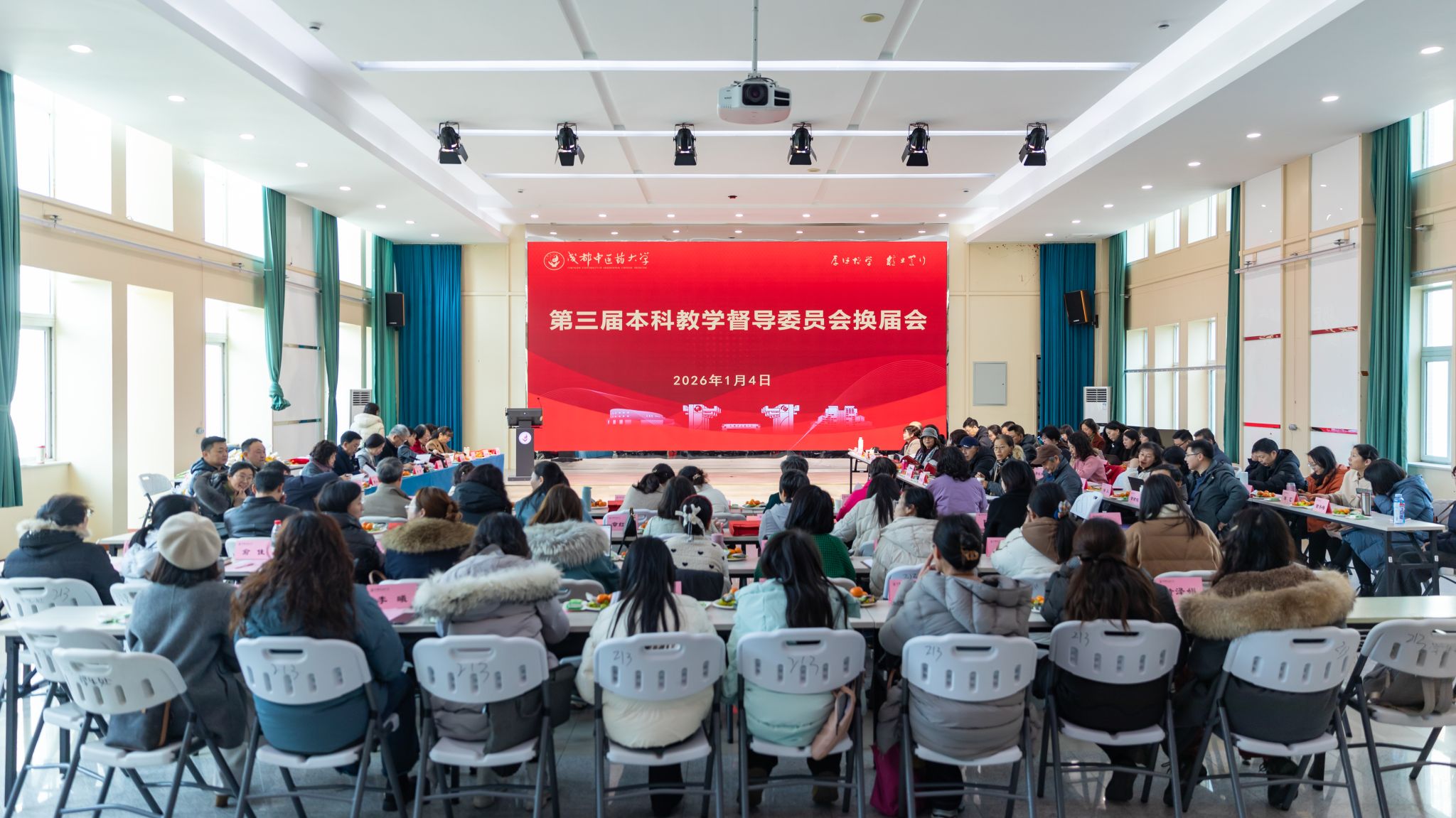 为进一步强化本科教学质量保障体系,推动教学督导工作提质增效,充分发挥教学督导在人才培养中的重要作用,1月4日,学校本科教学督导委员会换届工作会在温江校区召开。校长曾芳、第二届本科教学督导委员会主任委员马跃荣、第三届本科教学督导委员会主任委员余曙光,以及第二届、第三届本科教学督导委员会全体委员,各学院、相关部门领导出席会议。会议由教务处处长胡一梅主持。