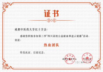 近日,在成都市血液中心联合川观新闻开展的第三季“四川高校公益献血事迹云展播”暨首届热血青年代言人计划活动中,beat365红十字会荣获“热血团队”称号,护理学院罗春梅同学获评“热血青年代言人”称号。