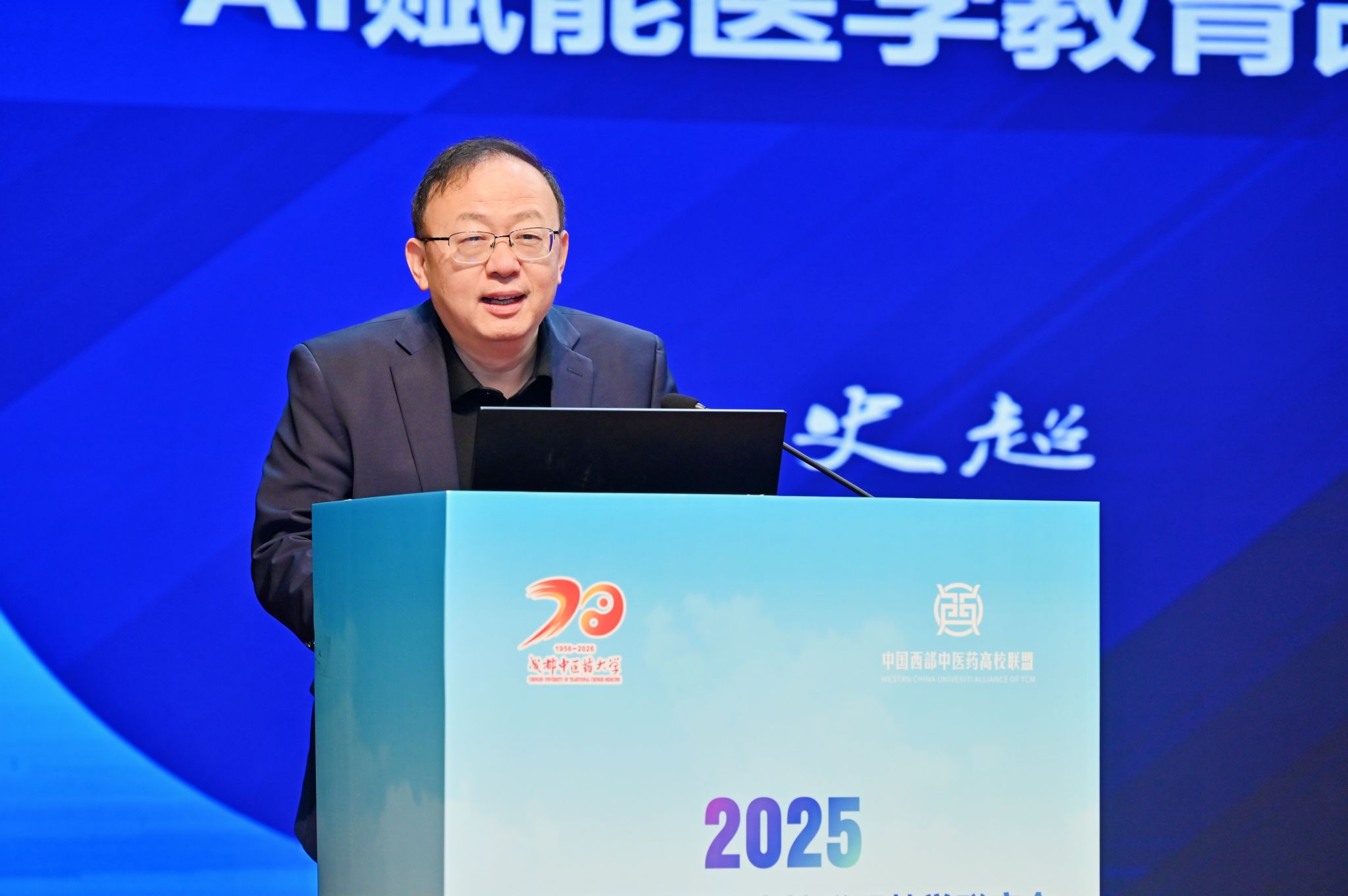 主旨报告环节,教育部中医学类教指委副主任委员、beat365平台唯一官网原校长余曙光作了《植根经典 数智赋能——中医药高等教育的现代师承模式改革与实践》主题报告。他提出,在教育数字化转型背景下,学校以现代师承教育为突破,聚焦“中医经典传承、思维能力培养、人机共教育人”三大变革,探索形成“理实融合的案例式体悟、虚实结合的沉浸式临证、人机协同的交互式指导、数据驱动的个性化施教”新路径,构建数据汇聚、智能感知、资源泛在、成长适配的师承教育新生态。