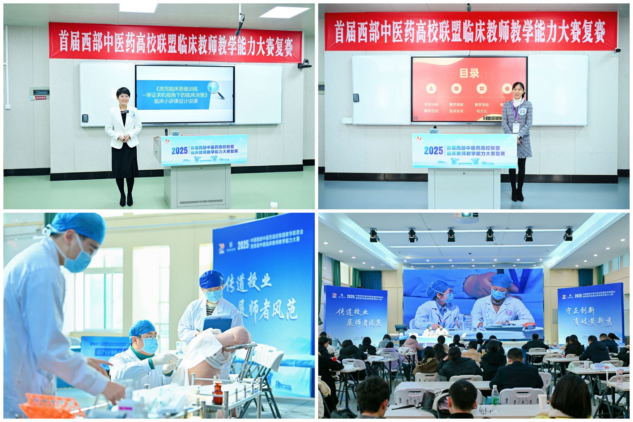 作为西部中医药教育领域首次临床教学专项赛事,本次大赛以“传道授业展师者风范、守正创新育岐黄新秀”为宗旨,全方位、多维度考核临床教师的教学能力与综合素养。初赛比拼教学查房,复赛采用小讲课说课形式,决赛则设置教学门诊与临床技能模拟教学两大核心板块,着重考察临床教师在教案设计、学生的临床思维培养、课程思政融入和医学人文教育等方面的水平,全面展现新时代临床教师的综合素养。