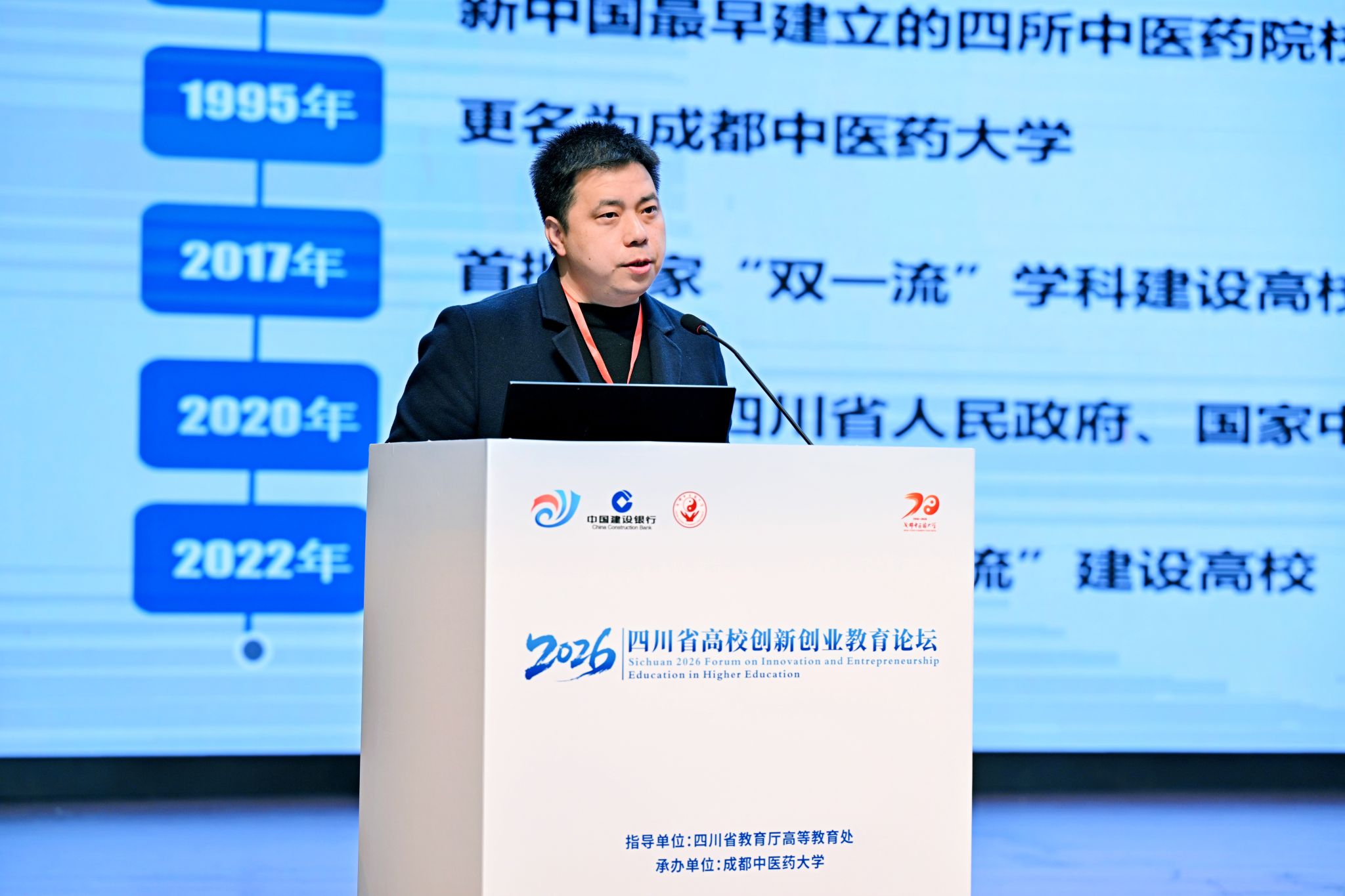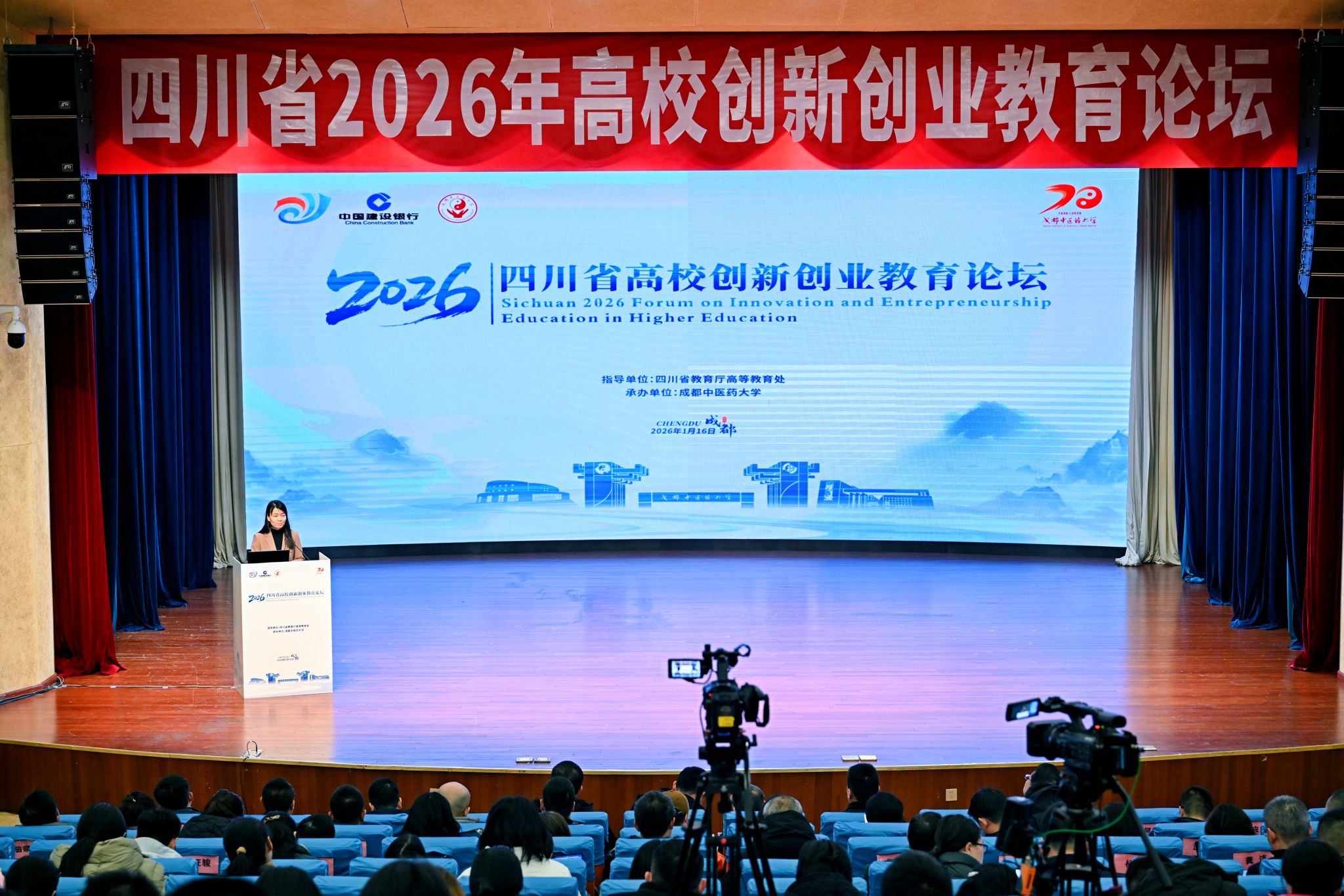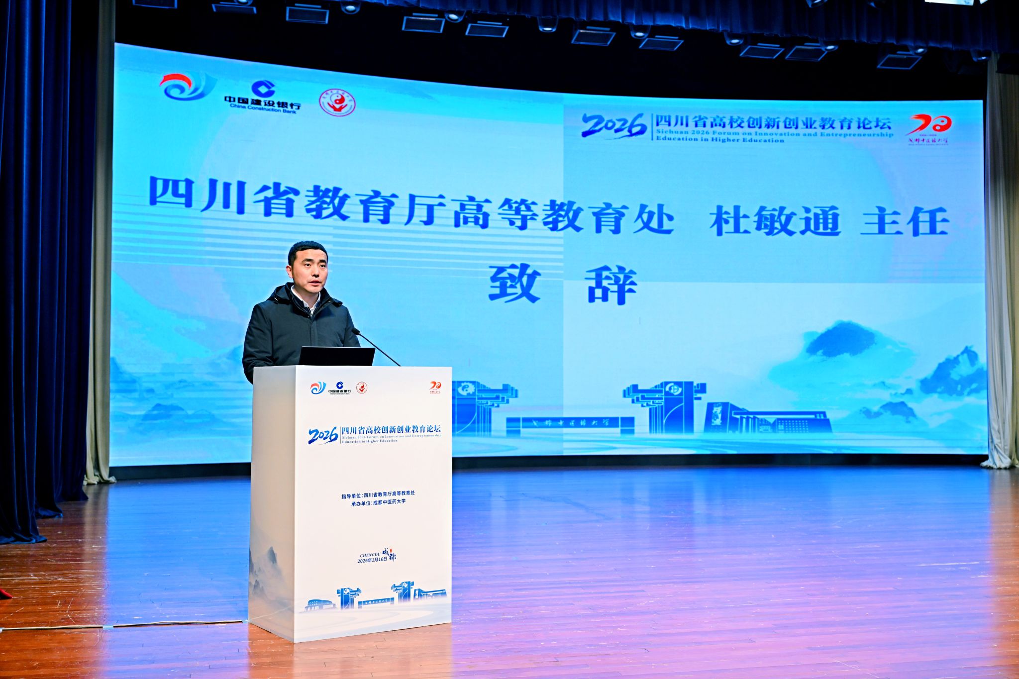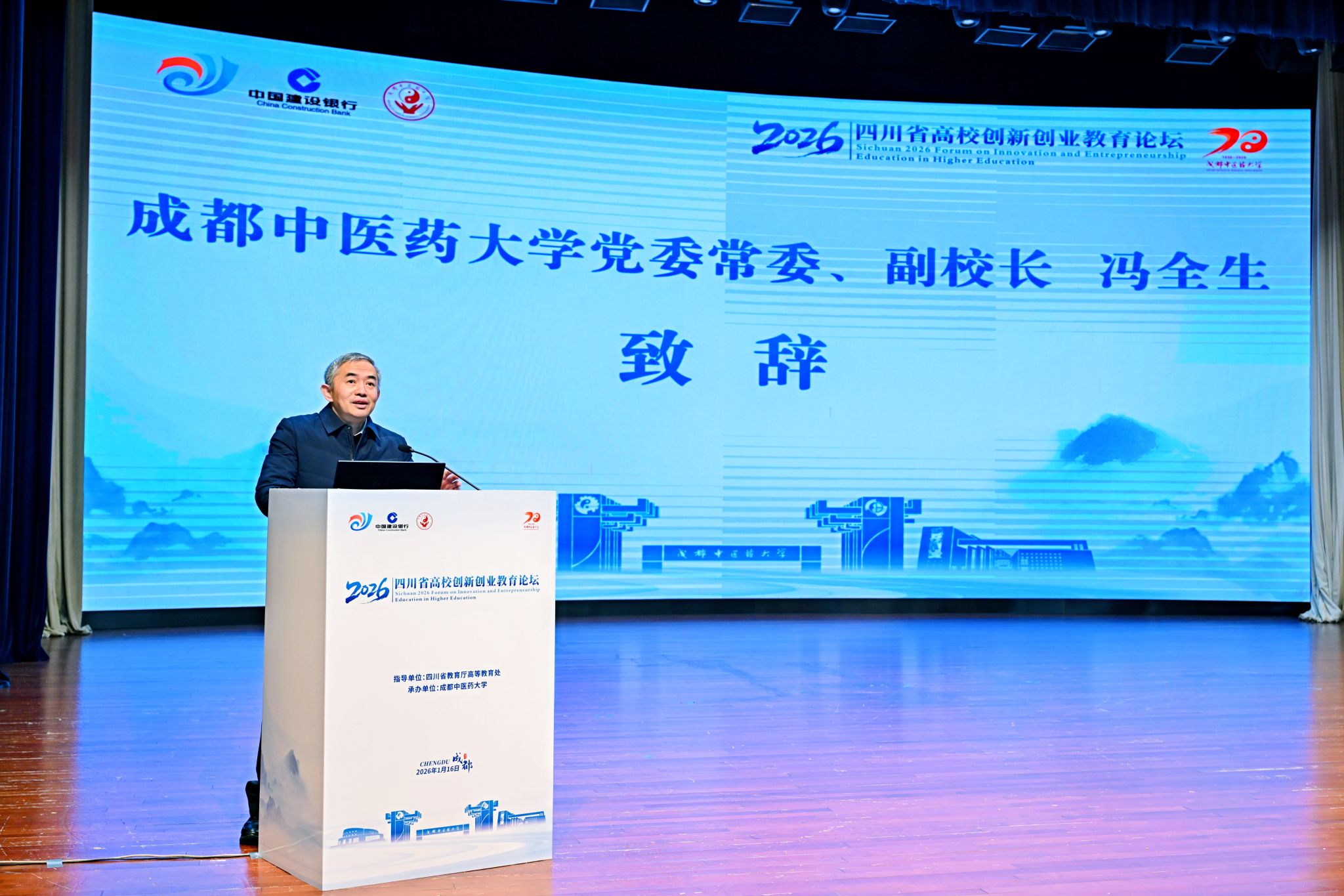 1月16日,由四川省教育厅指导、beat365平台唯一官网承办的“四川省2026年高校创新创业教育论坛”在beat365温江校区开幕。本次论坛以“融合创新·汇智未来——高校创新创业教育高质量发展路径探索”为主题,汇聚了来自四川大学、电子科技大学、西南交通大学等100多所省内高校的领导、专家学者以及师生代表,共同探讨新时代高校创新创业教育的理念、路径与实践。