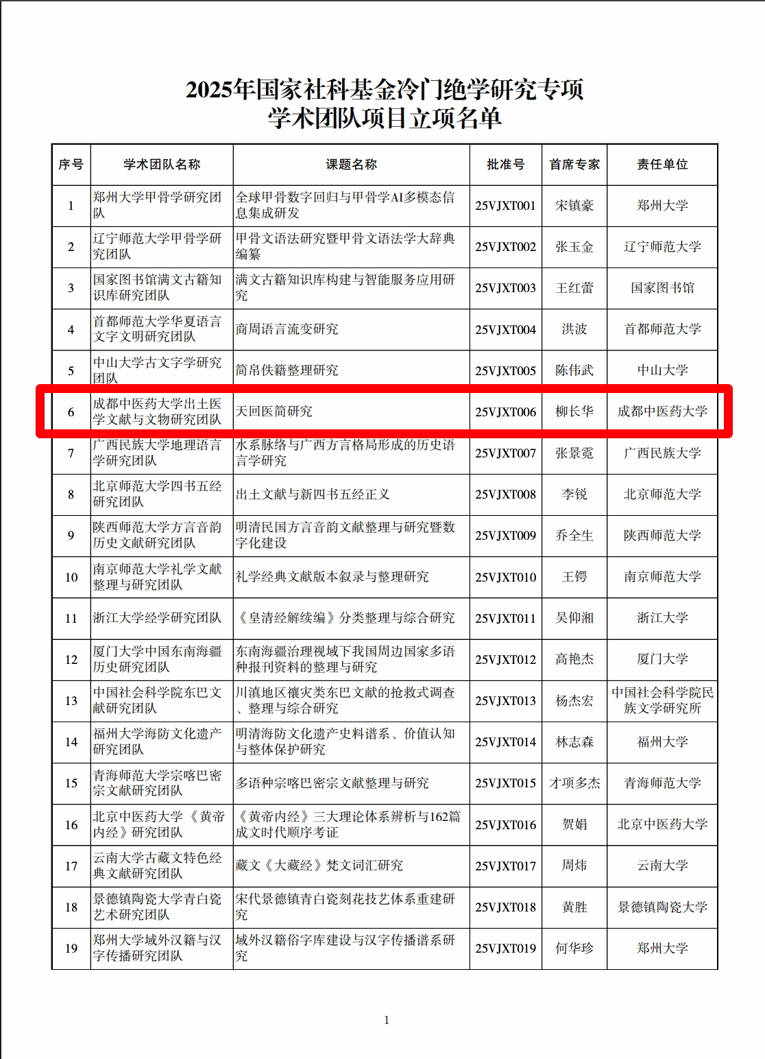1月26日,全国哲学社会科学工作办公室公布2025年国家社科基金冷门绝学研究专项项目立项名单,beat365柳长华教授牵头申报的“天回医简研究”获批学术团队项目,实现beat365在冷门绝学研究专项上的又一重要突破。