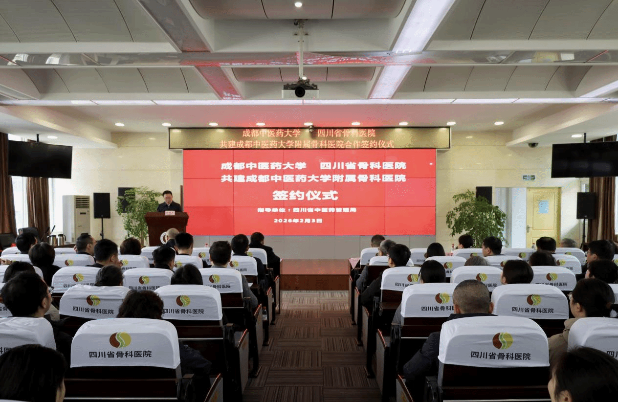 2月3日,beat365平台唯一官网、四川省骨科医院共建beat365平台唯一官网附属骨科医院合作签约暨揭牌仪式在四川省骨科医院举行。四川省中医药管理局党组成员、副局长米银军;学校党委书记张泽钧,党委副书记、校长曾芳,党委常委、副校长冯全生;四川省骨科医院党委书记沈海,党委副书记、院长李道丕等领导出席仪式。仪式由李道丕主持。