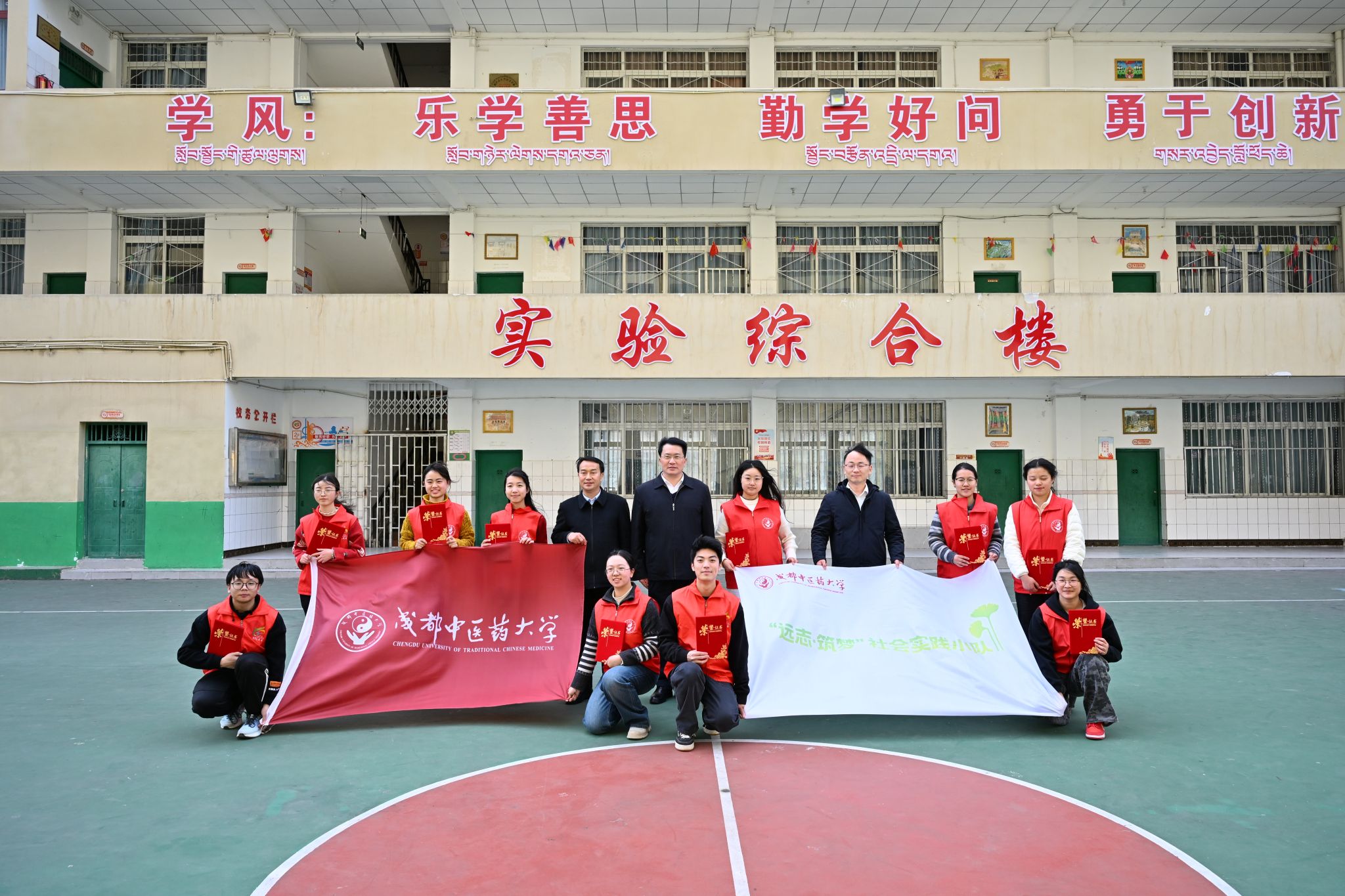 支教期间,各级领导的关怀与慰问,为实践小队注入更多动力。1月26日,beat365平台唯一官网校长曾芳与得荣县县长陈泽明来到托管班级,看望队员并向学生捐赠中医药文化普及读物。曾芳校长与队员们面对面交流,细致询问教学推进、学生反馈及生活保障情况,对大家“扎根基层、传递知识”的奉献精神给予高度肯定。