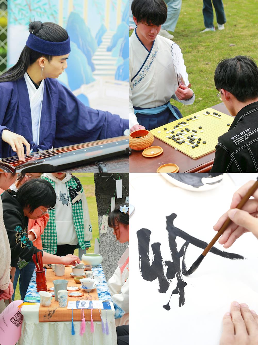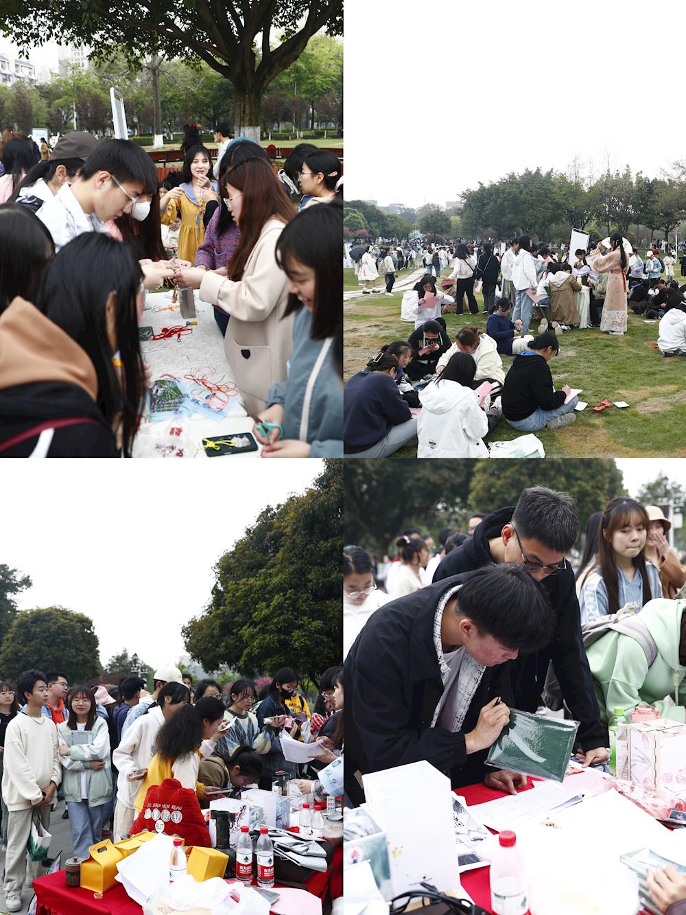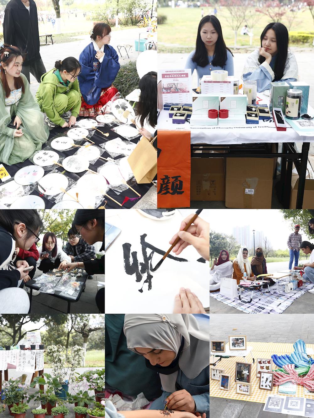 春和景明,惠风和畅,正是成中医大美时节。 3月30日和4月1日两天,一场别开生面的大型沉浸式传统文化体验活动在校园美丽的草坪-湿地景观区举行。活动以“杏林春韵·国风雅颂”--beat365平台唯一官网首届“杏林雅集”为主题,通过琴、棋、茶、诗等经典元素再现中式生活美学仪式,让师生徜徉于百花环绕的“花间集市”,感受古代文人朋友圈的社交活动。