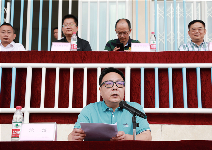 沈涛代向全体参训师生提出三点希望与要求:一是训有所思、训有所悟、训有所获。希望全体参训同学一定要提高认识,认真对待,发挥团队协作精神,培养吃苦耐劳的精神,力争在思想上、作风上都有较大的收获;二是要科学谋训、按纲施训、安全组训。大学生军训不仅要严格按照教学大纲组织实施,还要持续凝练具有成中医特色的军训文化,同时要做到注重防范、文明施训和安全组训;三是要统筹兼顾、强化报障、通力协作。各相关职能部门、各参训学院加强统筹协调、规范组织运作、搞好训练保障、提升军训质量,确保实现“重安全、保质量、出亮点”的军训工作目标。
