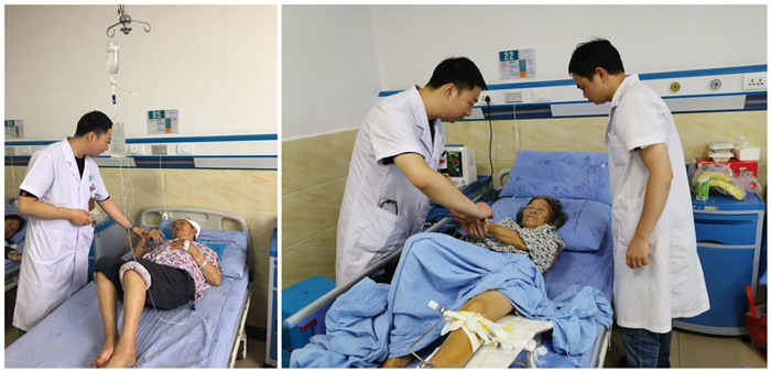 骨科护士廖天南和沈瑶在急诊科协助完善前期相关资料,随时转运病房伤员,应急接诊;在临时组建的骨科病房,对伤员进行了系统的病情观察,功能锻炼指导。